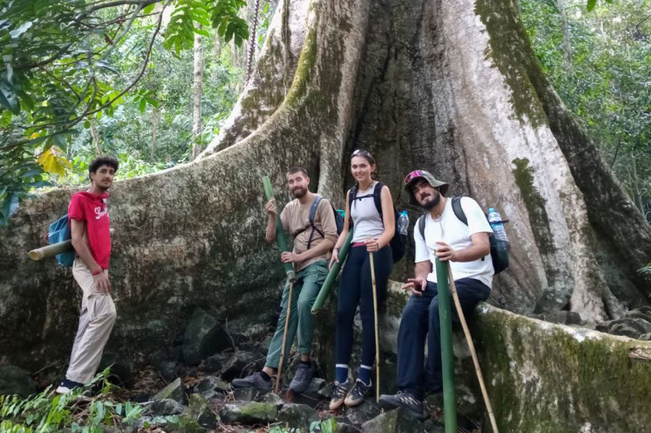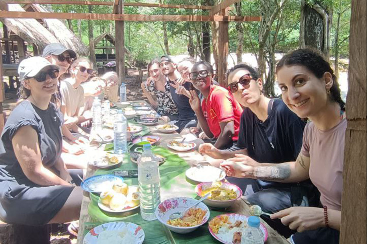 After an easy walk through the trees, you’ll arrive at a riverside clearing where Bunong villagers will prepare a traditional lunch cooked in bamboo over an open fire.